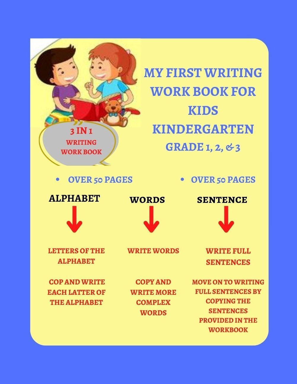 Children work book cover Writing work book for kids and kindergarten grade 1,2,3